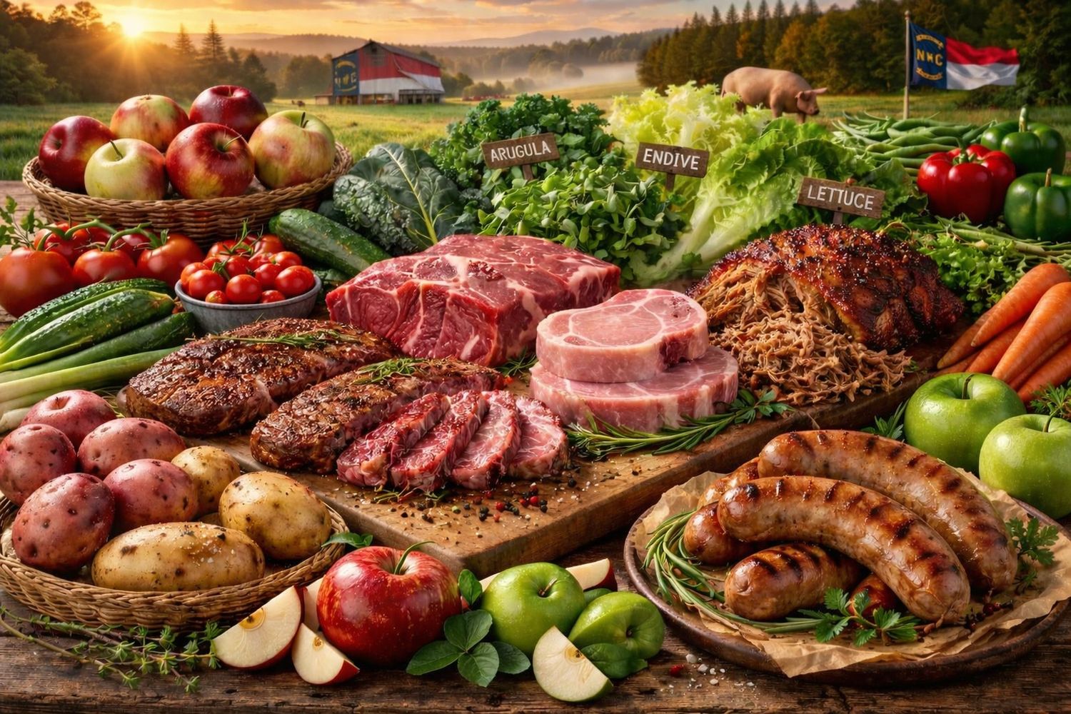 Farm to Table Grocery is a collaboration of meat producers, fruit, vegetable & mushroom farmers, coffee beans, beverages, canners and bakers. There are products from local artisans of soaps, candles, leathering, gifts and art. Our vendor relationships produce and create their products throughout North Carolina. The products are sold under their current brand names and branded for Farm to Table Grocery.